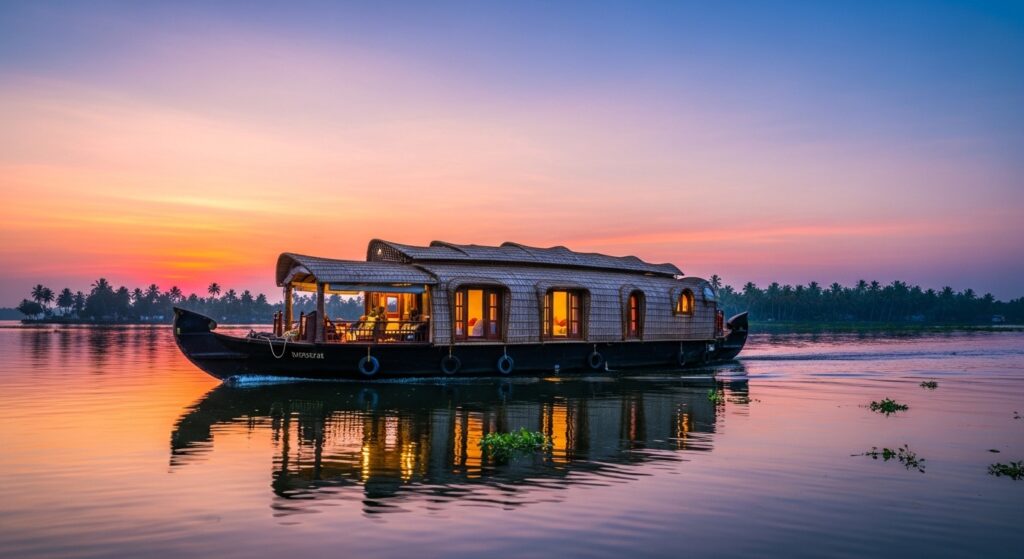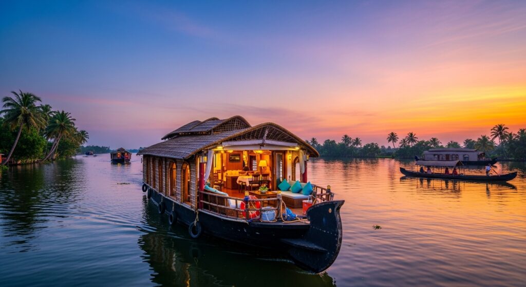 As you cruise along, you’ll witness lush paddy fields, coconut groves, village life, and local fishermen casting their nets—scenes that define the backwater charm. The houseboats are fully equipped with modern amenities and include a personal chef who serves authentic Kerala cuisine.