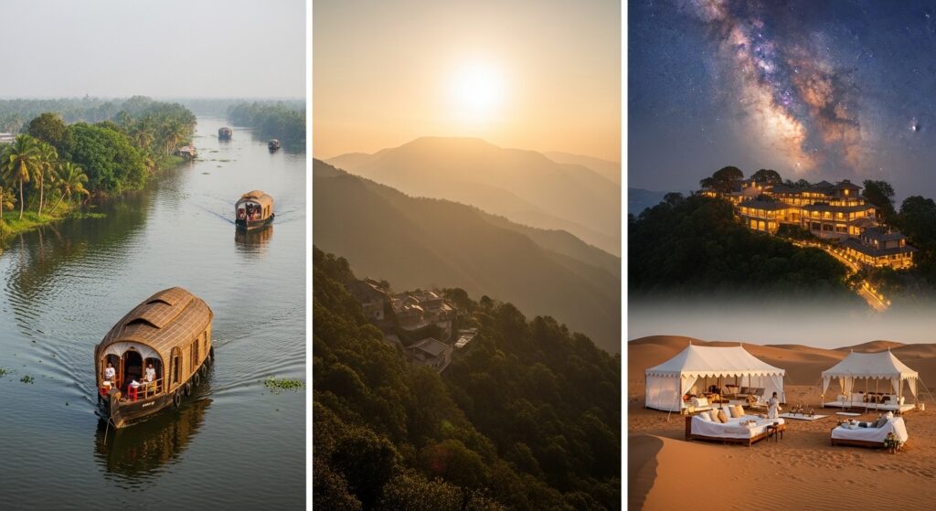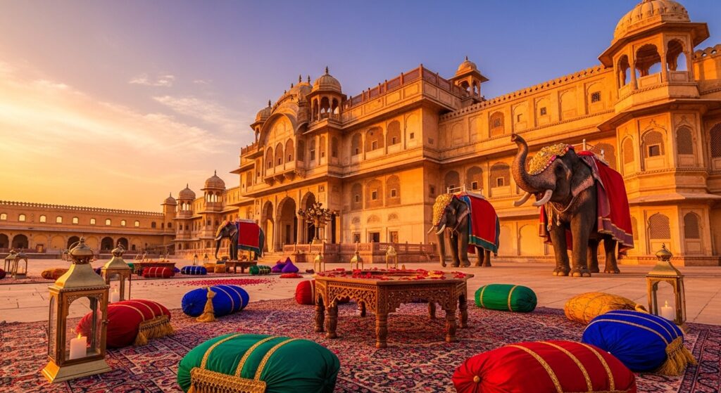 • Stay at iconic heritage hotels like The Oberoi, Taj, and Leela.