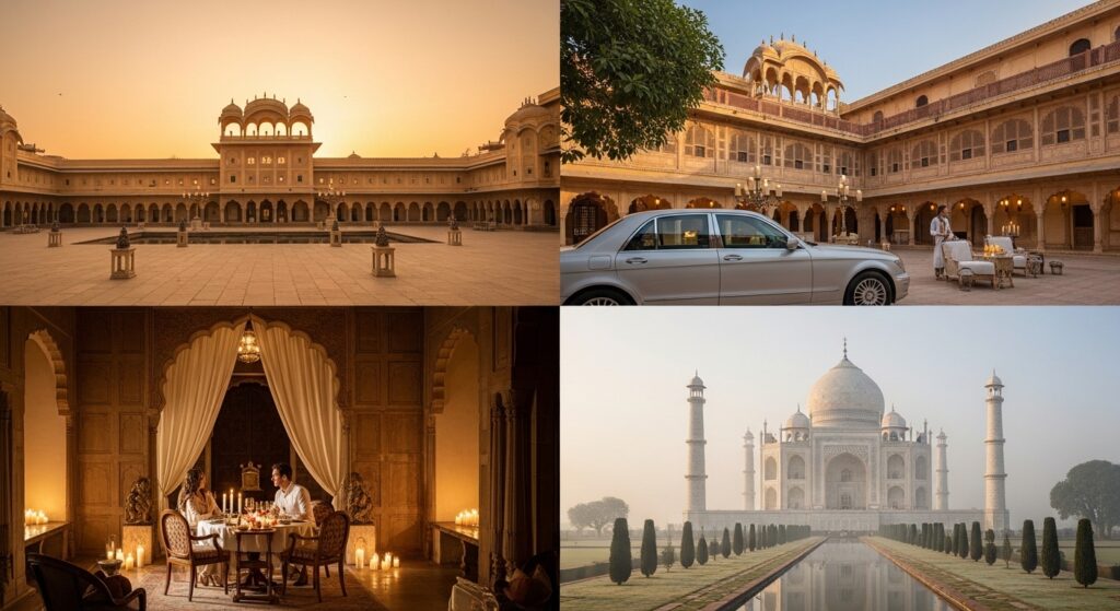 A high-end curated journey across India featuring iconic sights, 5-star and palace stays, exclusive activities, and premium services.